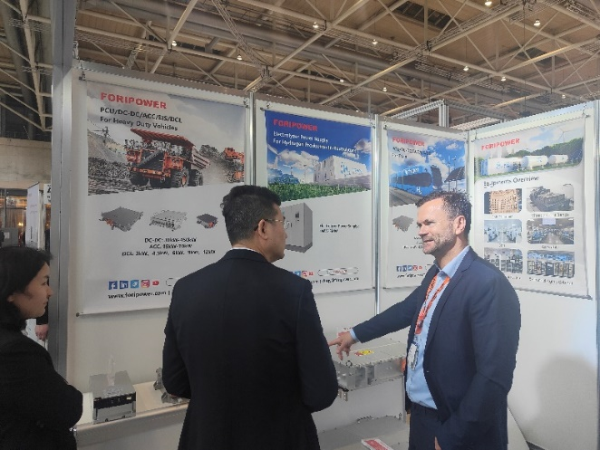 本次汉诺威工业博览会,福瑞电气展出了燃料电池DC-DC变换器,燃料电池高压系统集成PCU,高转速空压机电机控制器等明星产品。吸引了众多行业伙伴的驻足咨询与洽谈,并进行亲切的接触沟通。